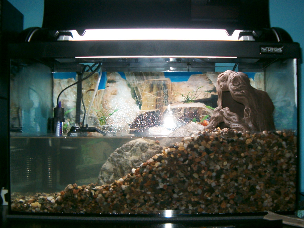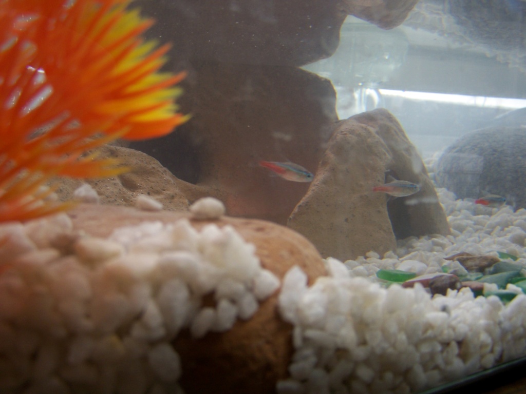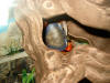 a jeho odraz ve skle akvária...